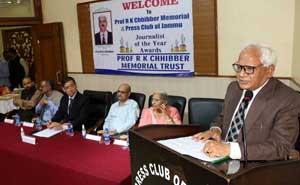 The awards were presented at a functionorganised by the Prof. R.K. Chhibber Memorial Trust here today at the Press Club of Jammu.